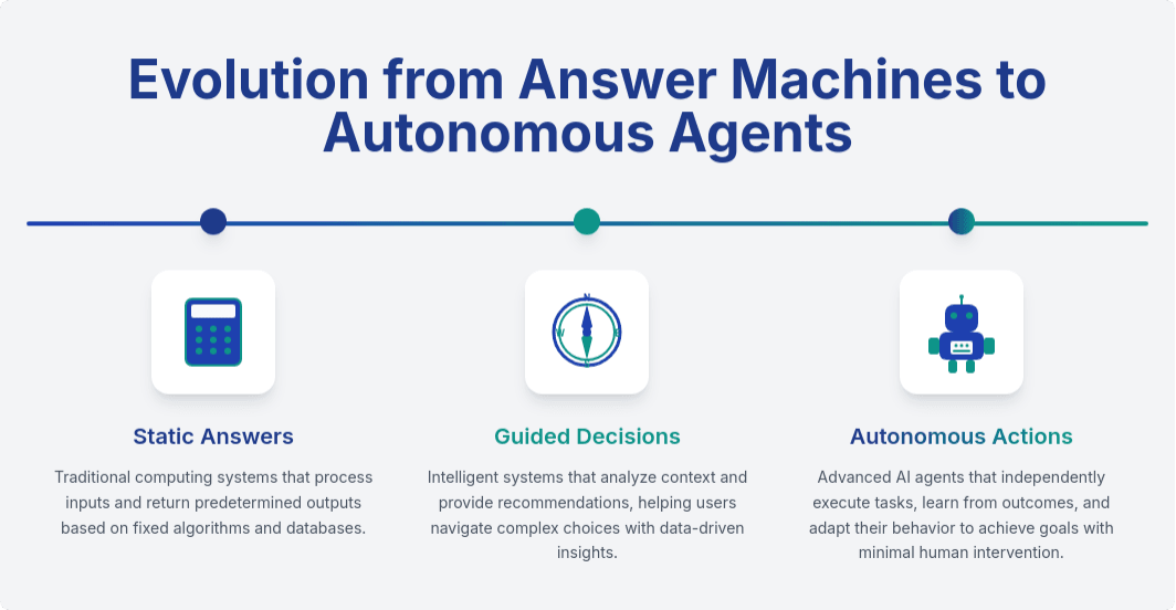 But something fundamental shifted with large language models. Technology stopped being just a pointer to decision-making and started understanding the pointers themselves. AI began grasping context, interpreting intent, and—crucially—acting on it. Let's dive deeper