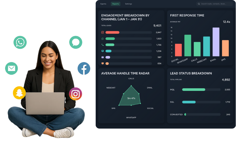 Connect across web, WhatsApp, Instagram, and Email—turning fragmented clicks into continuous, context-rich journeys that drive real growth.